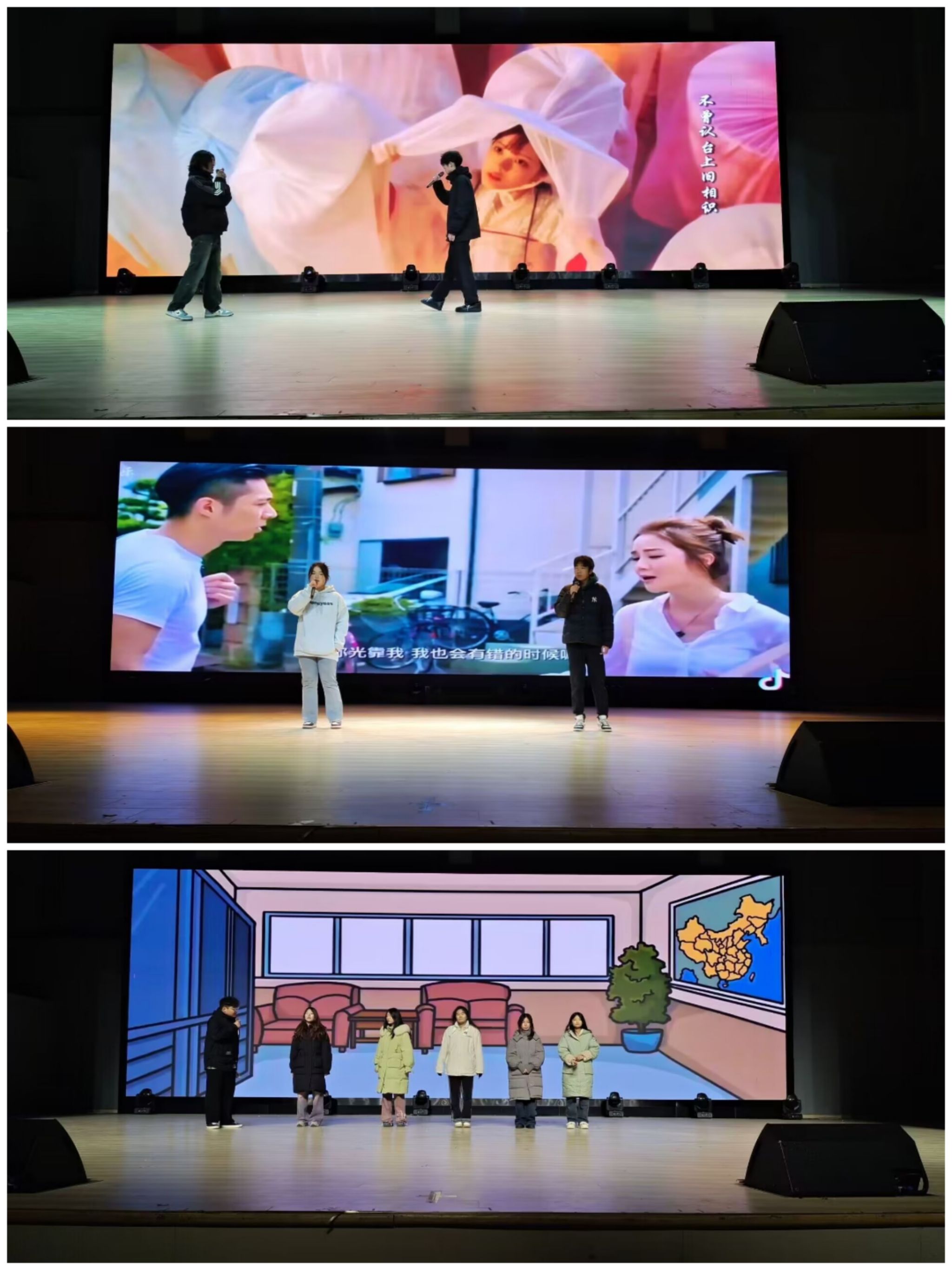 同学们全力以赴地投入到排练中。他们克服了天气寒冷、时间紧张等种种困难。排练中,同学们不断调整台词和动作,进行思路交流和讨论,理解每一个字词,注重每一处的细节,有了错误,及时的去改正,努力刻画角色的特点和个性,追求更加精确和幽默的表演效果。此外,舞台布景、幕后工作和道具等方面也做到了精心准备,力求之后的表演效果达到最佳状态。这些准备工作为整个节目增添了更多的趣味和观赏性,使观众更好地融入到故事情节之中。