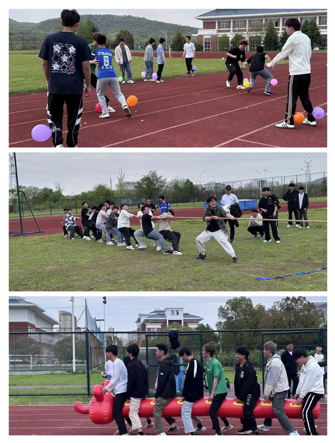 趣味运动会结合了传统的体育竞技元素与心理健康教育理念,通过轻松、有趣的运动促进同学们的心理健康,帮助他们缓解学习压力。比赛时小组成员彼此加油鼓劲,不时传来同学们的欢笑声,同学们的身影与操场绘成了一张张青春活力的画卷。同学们在运动中感受到了快乐,也在快乐中收获了成长。