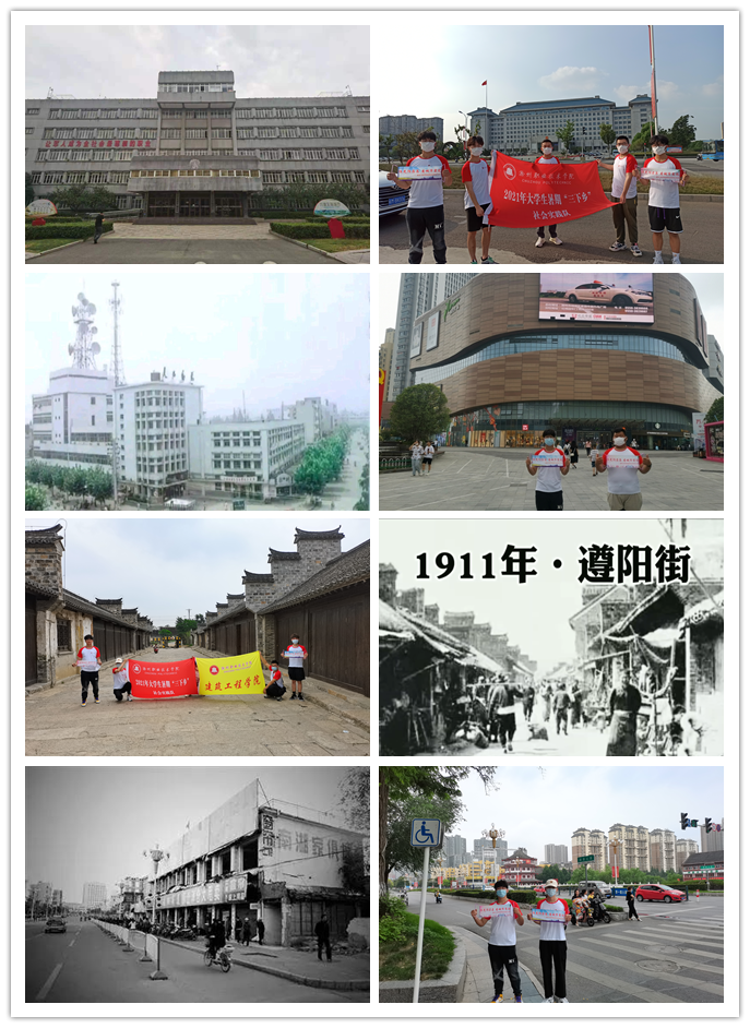 建筑是一个城市历史文化的缩影,记载着城市经历的世事,沧桑变化。实践小分队通过查找资料、走访、参观城市规划馆以及寻找影像资料等方式,对比发现家乡在基础设施、城市面貌以及城市文化等方面的发展与变迁以及了解家乡的总体规划。
