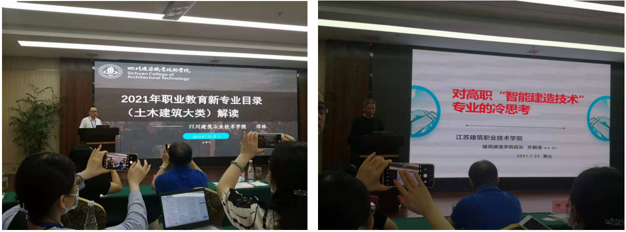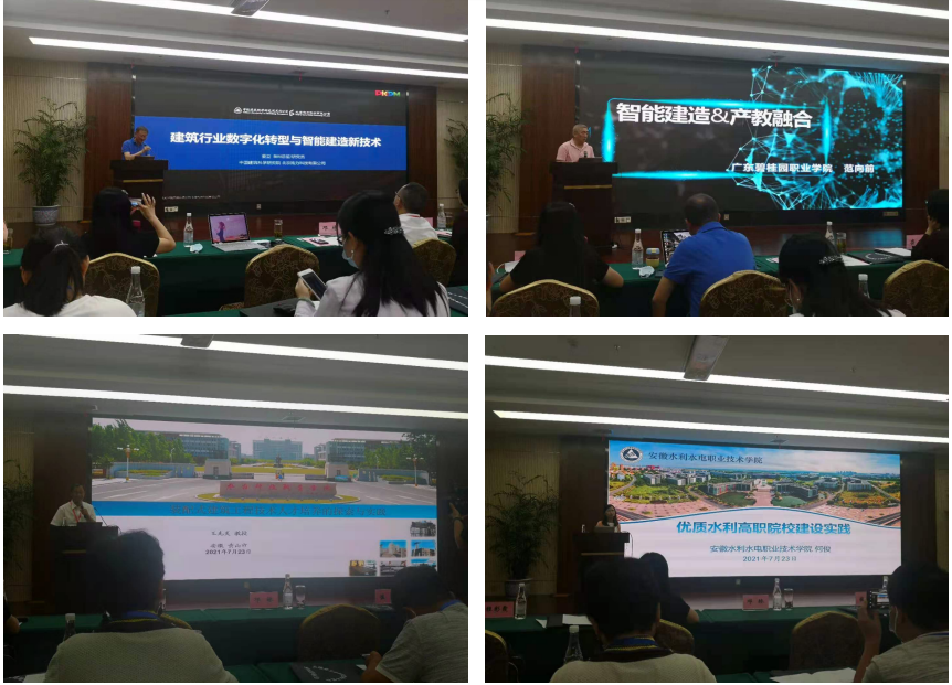 另外,中国建筑科学研究院、北京构力科技有限公司姜立研究员做了《建筑行业数字化转型与智能建造新技术》的报告,广东碧桂园职业学院范向前教授汇报了《智能建造与产教融合》报告,枣庄科技职业学院王光炎教授做了《装配式建筑工程技术人才培养的探索与实践》报告,安徽水利水电职业技术学院何俊教授报告了《优质水利高职院校建设实践》的相关内容。