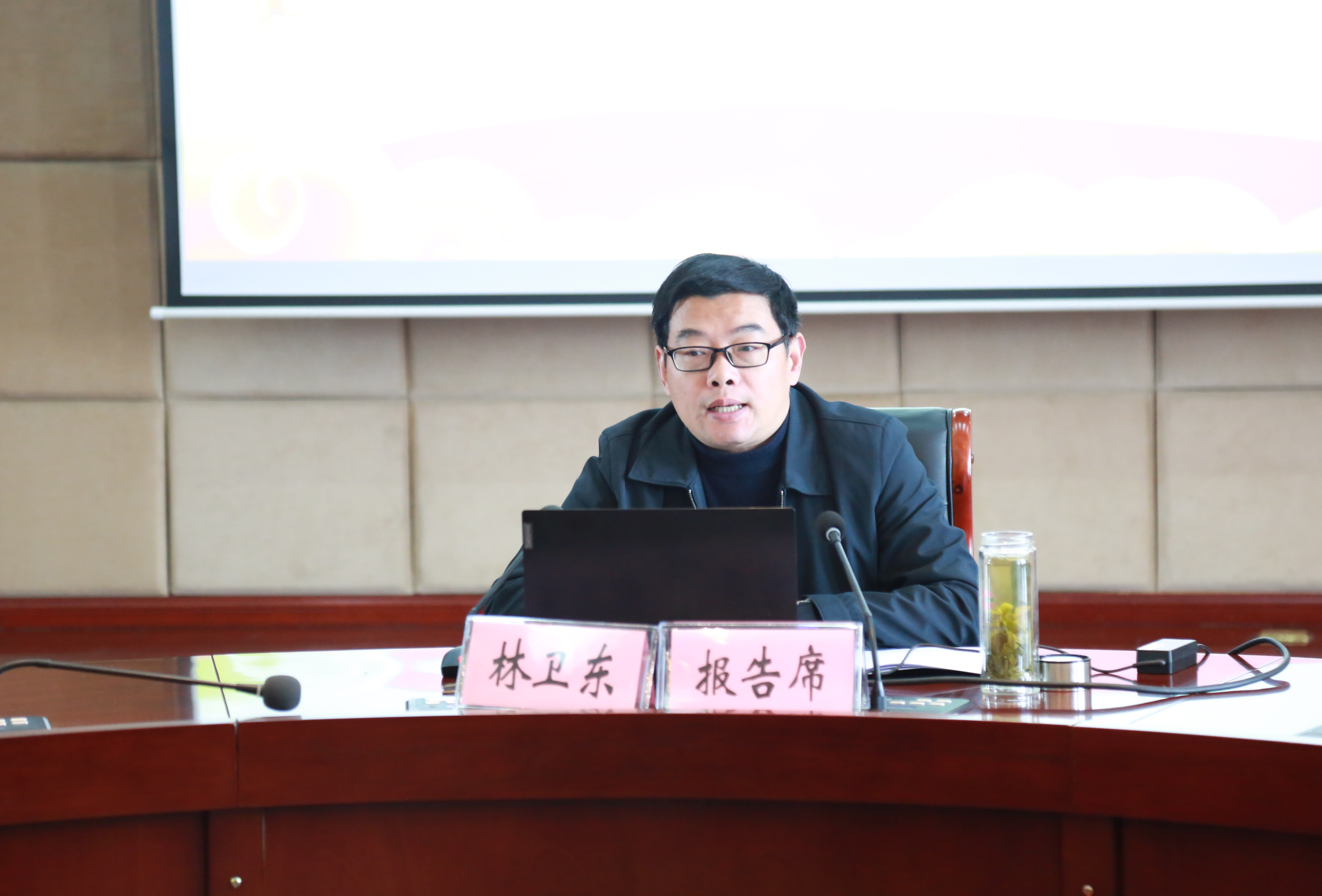 林卫东从“充分认识开展党史学习教育的重大意义、认真研读党史基本著作、深刻把握开展党史学习教育的重点、学懂弄通做实习近平新时代中国特色社会主义思想”四个方面,结合大量生动而经典的人物故事和党史案例,阐明了开展党史学习教育为什么学、学什么、怎么学、达到什么目的等一系列问题,既有政治高度,又有理论深度,更有实践温度,让与会同志深受教育和启发。