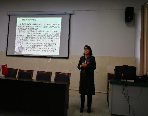 琅琊区政府教育督导委员会专职督学、民盟滁州市委委员张春红为本次活动作了题为《教师科学发声与嗓音保护》的知识讲座。参加活动的党派人士和沙河学校的部分教师共同聆听。