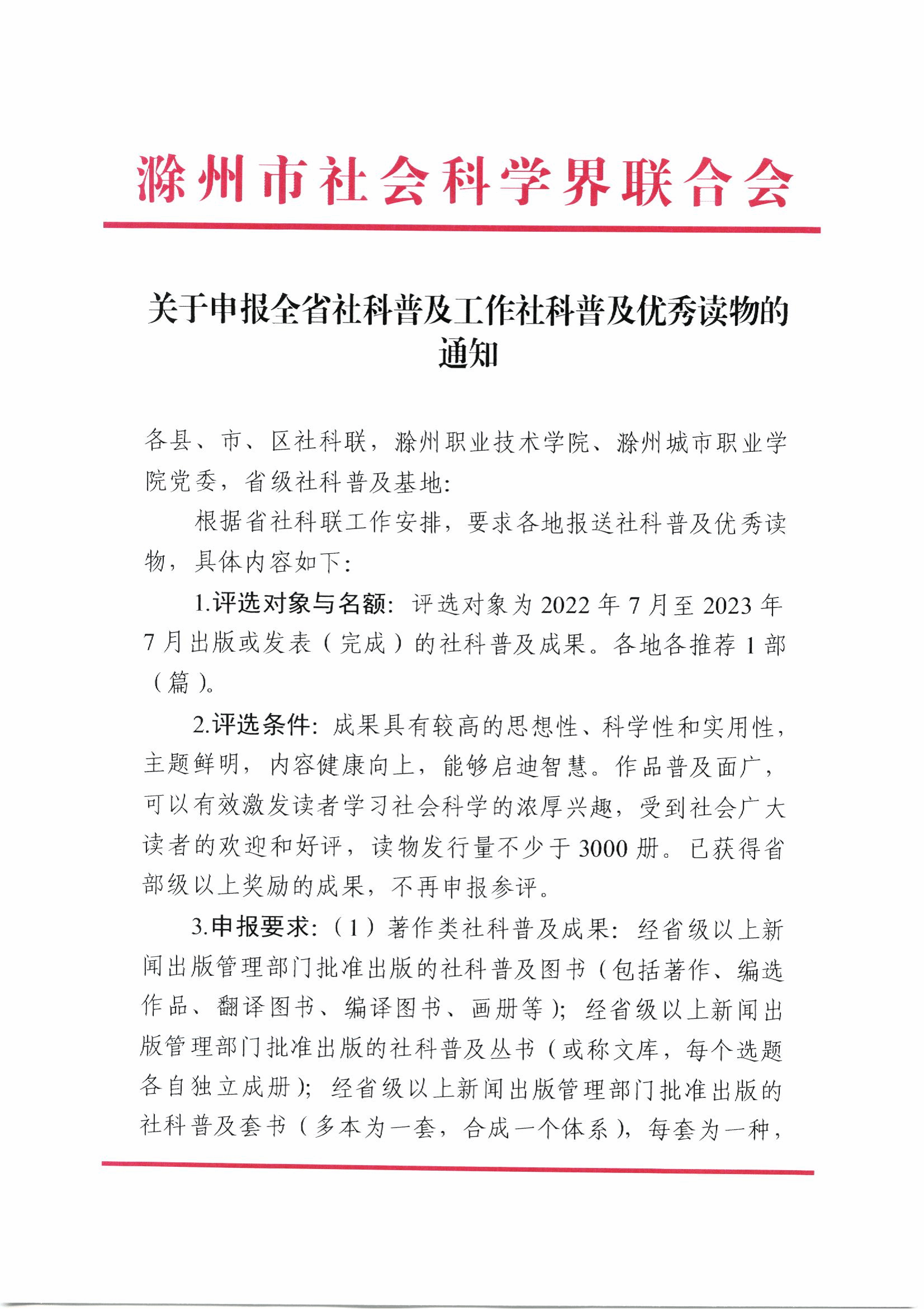 关于申报全省社科普及工作社科普及优秀读物的通知