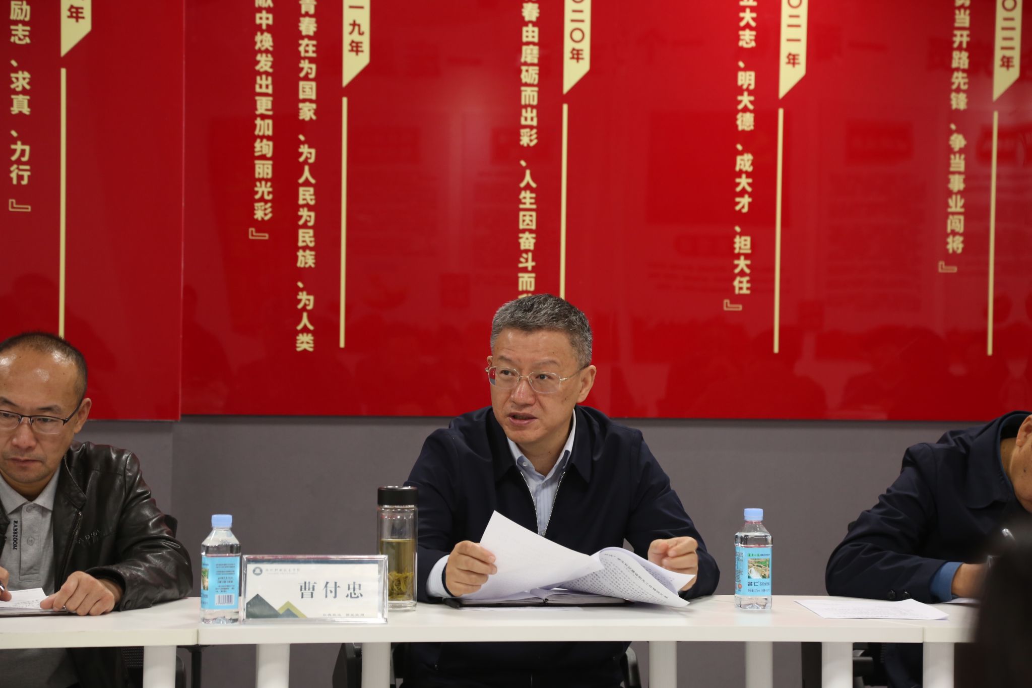 会前,曹付忠一行实地查看了学生社区“阳明书院”“丰乐驿站”及学生社区综合服务中心事务大厅、阅享书屋、就业指导中心、党团活动室、教师工作室、谈心谈话室等相关场所。