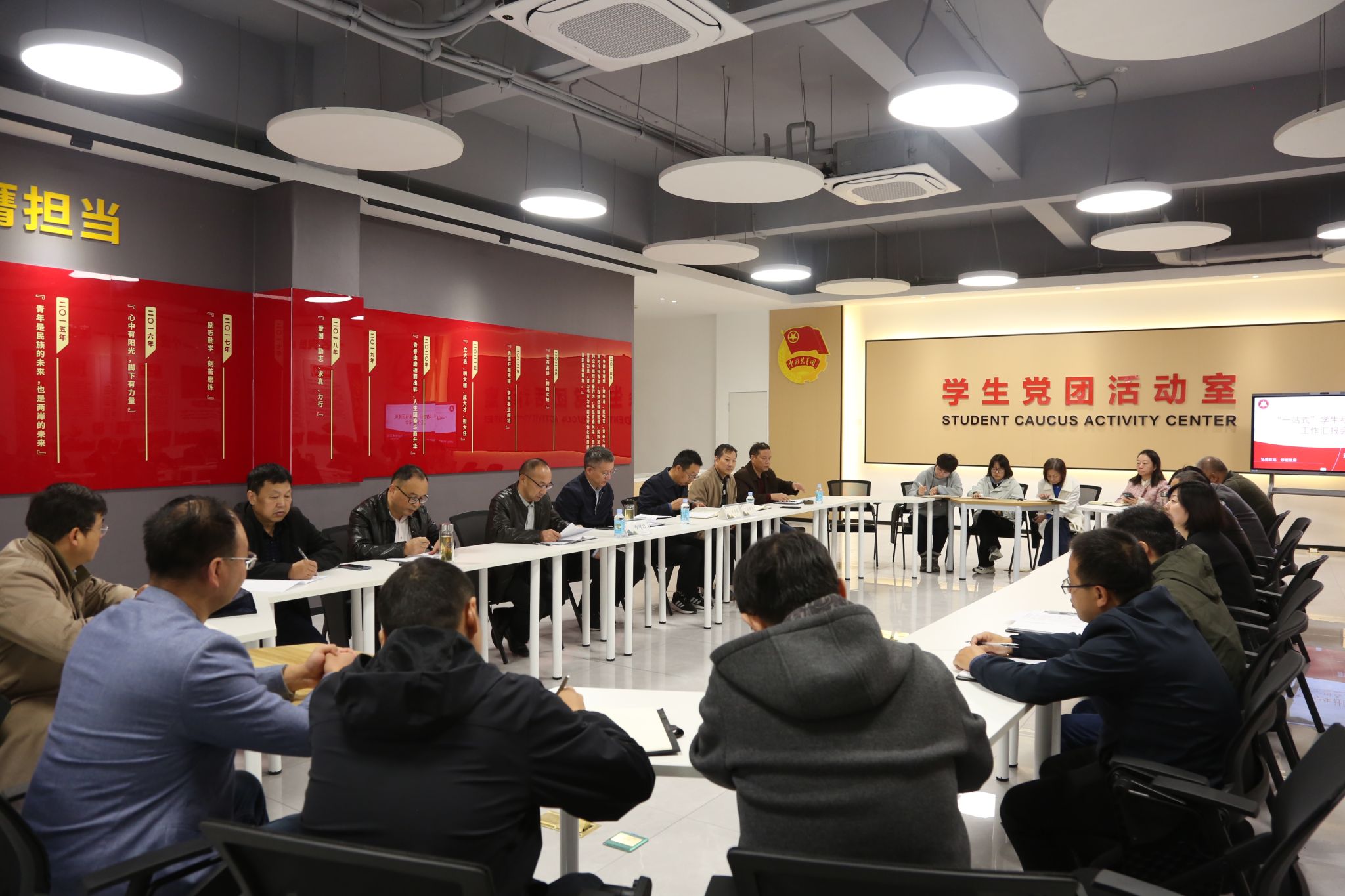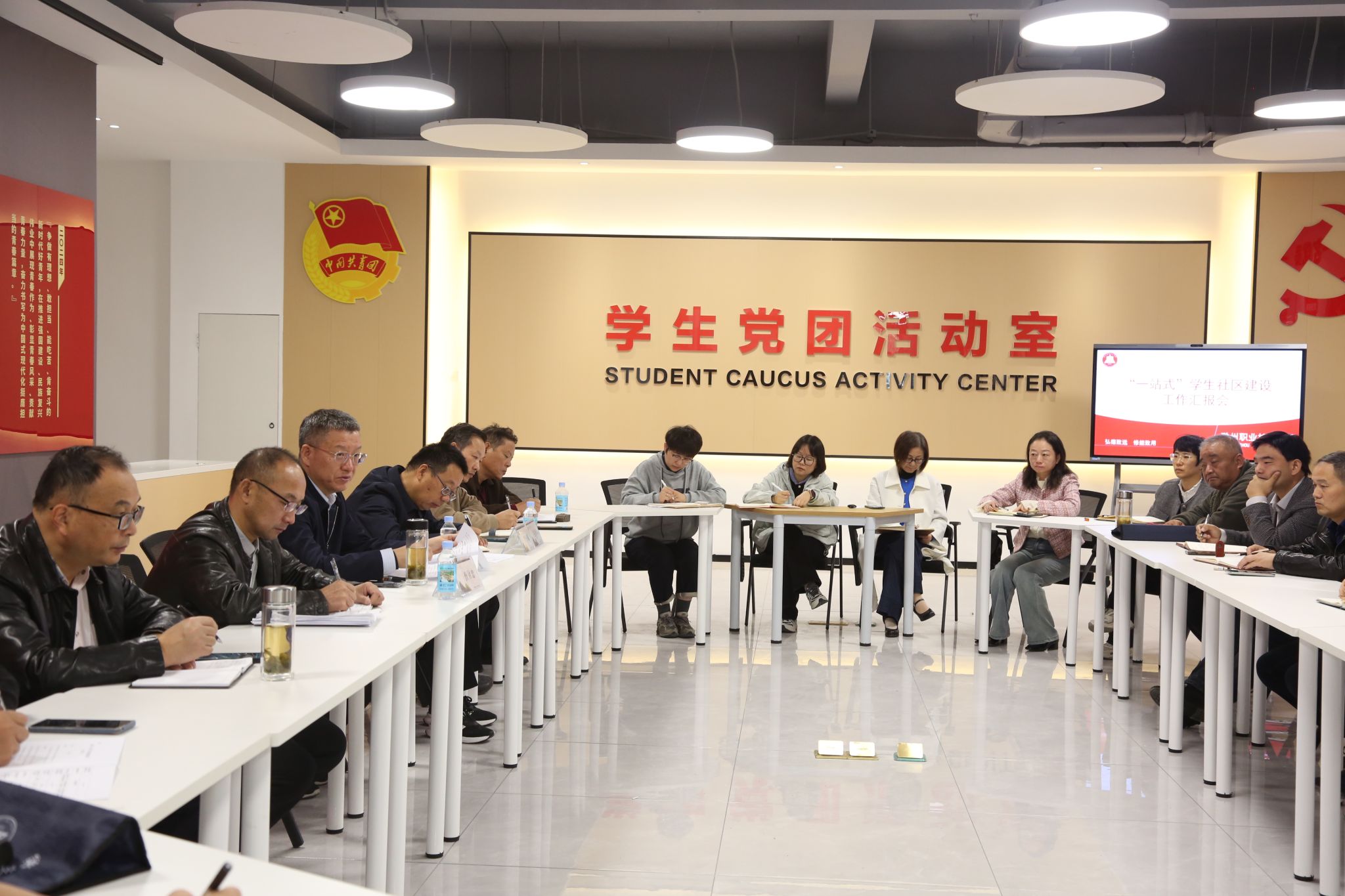 会上,学生工作处对学校“一站式”学生社区建设相关工作情况作了汇报。与会各部门负责同志就相关工作进行了交流发言。