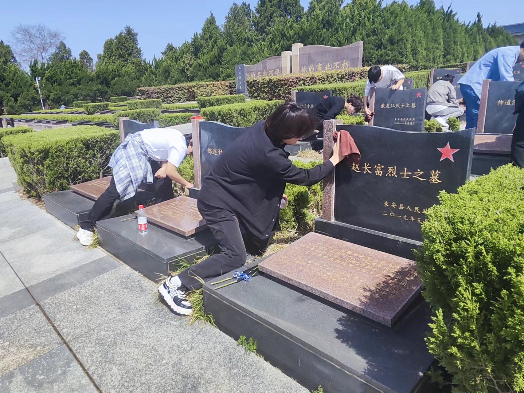随后,同学们认真细致地对烈士墓进行清扫清洁,为烈士献上鲜花。一朵朵鲜花整齐摆放,仿佛在诉说着对先烈们的无尽思念。