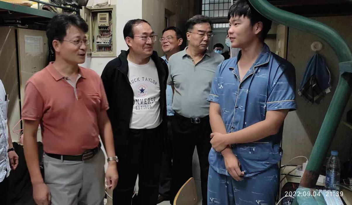 为进一步落实学校的疫情防控政策,切实了解学生生活、学习需求,关心学生思想状态,确保在校学生学习和生活平稳有序,9月4日晚,校党委委员、副校长苏有良带队深入学生宿舍走访看望学生。