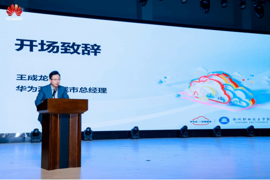 华为滁州城市总经理王成龙则分享了华为在人才培养上的愿景,强调与学院在产业学院共建、智慧校园等多方面的合作,旨在培养更多符合产业发展需求的高素质人才,推动学校数字化转型。