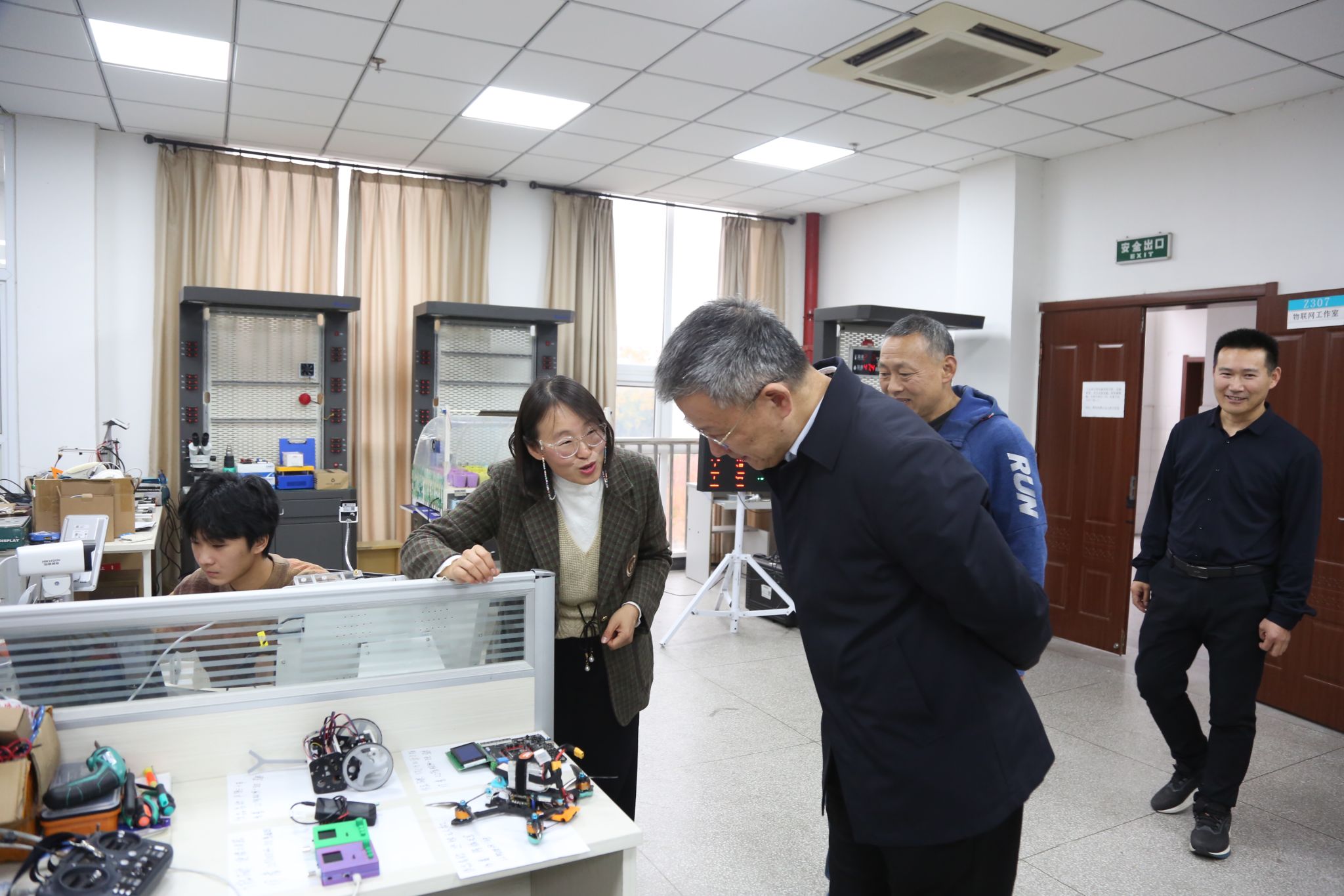 曹付忠一行实地考察物联网工作室和党建+软件开发与系统集成工作室,对教研室的整体建设情况提出了指导和建议。