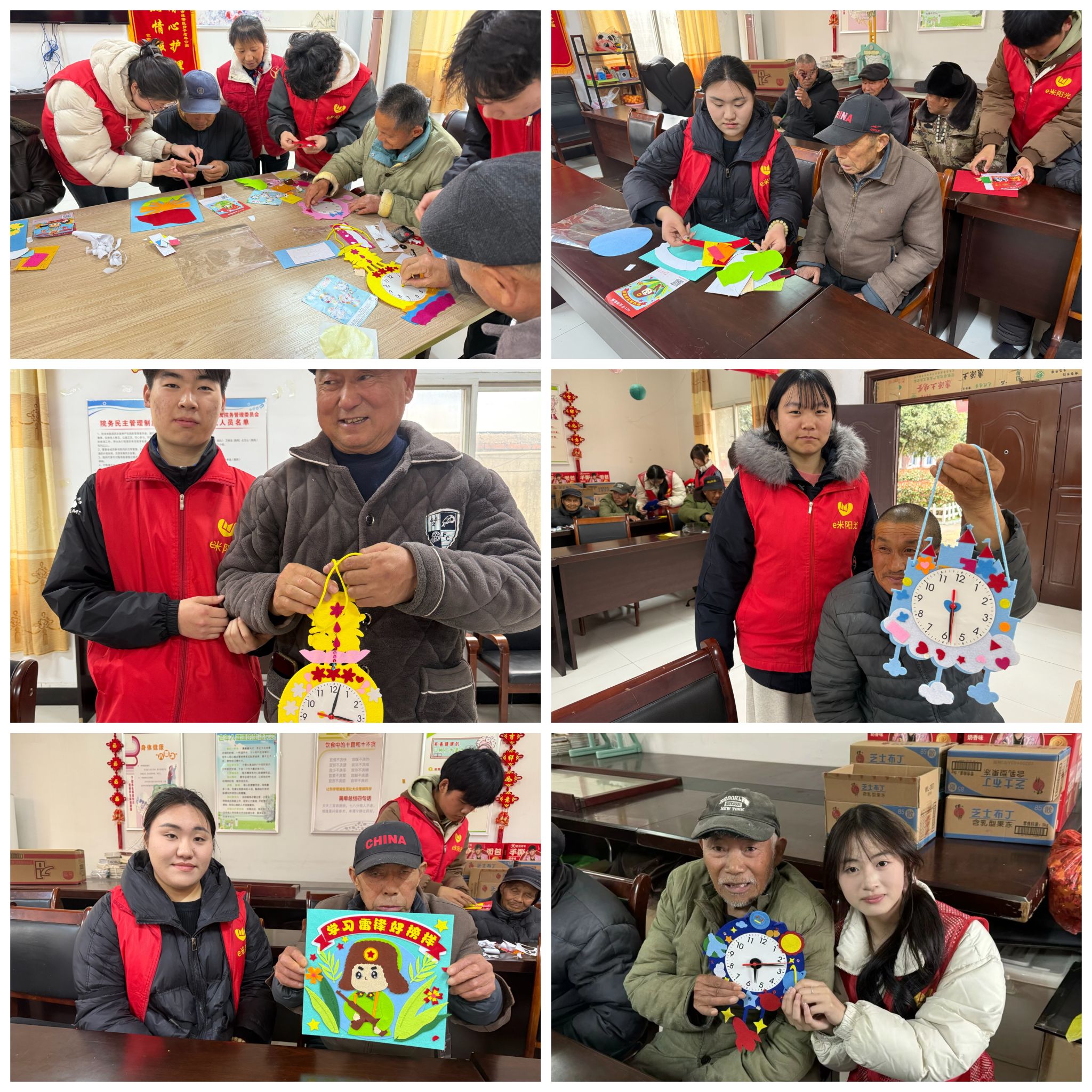 活动伊始,志愿者们精心准备了丰富多彩的节目表演,朗诵、唱歌、手势舞等轮番上阵,赢得了老人们的阵阵掌声和欢声笑语。表演结束后,手工环节拉开帷幕,志愿者们把手工材料递到老人手中,用轻柔且耐心的语调细致地讲解着每一个制作步骤,老人们也兴致勃勃地参与其中,一张张富有意义的雷锋贴画和手工时钟在老人们和志愿者的手下完成。部分志愿者陪老人们聊天,耐心倾听他们讲述过去的故事。志愿者们专注的神情和贴心的回应,让老人们感受到了久违的理解与尊重。