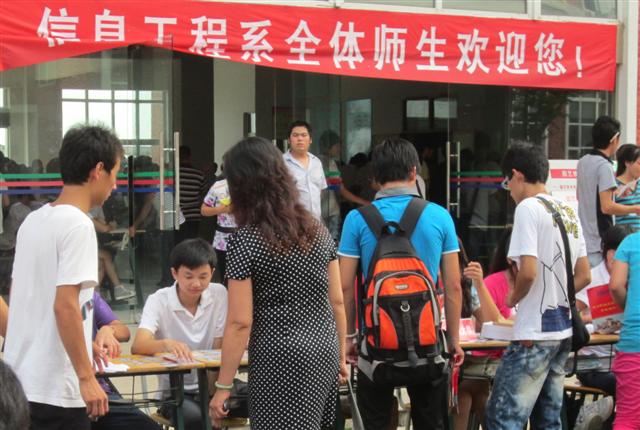 2011年9月13日,必赢76net线路官网校园内彩旗飘飘喜气洋洋,信息工程系也迎来2011级莘莘学子入学报到。我系工作人员在卜锡滨主任和程洪斌书记的安排下,以热情的态度、周到的安排为11级新生献上了最优质的服务。