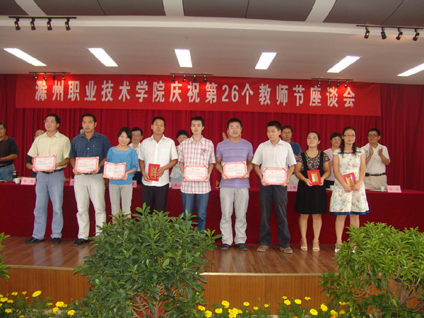 9月8日下午,在教师节来临之际,必赢76net线路官网庆祝第26个教师节座谈会在多功能厅隆重举行。大家欢聚一堂,共庆教师光荣节日,共谋教育发展大计。滁州市人民政府副市长朱云霞到会祝贺并作重要讲话,院党委书记沈中林、院长李柱梁分别就当前工作作出部署安排和强调要求。院领导吴大明、牛春雨、江洁、李亮、刘宏、陈学军出席会议。副院长吴大明主持会议,副院长江洁宣读表彰决定。副科级以上干部、副高职称以上、新录用教师及获奖教师参加会议。