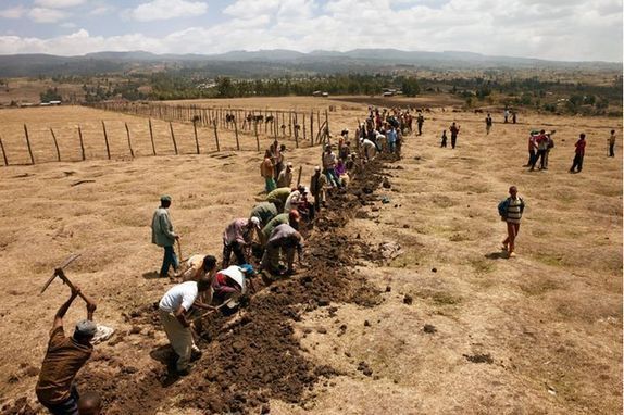 “我们能做任何事情。”在提切诺附近,村民们边唱歌,边挖埋管道的沟。在英国国际慈善团体WaterAid的帮助下,他们的努力不久就能让自己喝上自来水了。