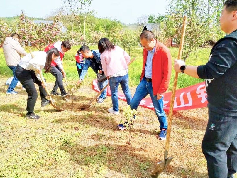 活动现场,大家在支部书记李兰兰的带领下热情高涨、干劲十足,三五个人一组,团结协作,默契配合。有的负责挖坑,有的负责扶正树苗,有的负责培实新土,道道工序细致认真、有条不紊。一棵棵新树苗被小心翼翼地种下,它们在和煦的春风中昂然挺立,焕发出勃勃生机。