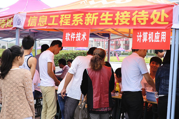 2015年9月12日,必赢76net线路官网信息工程系迎来了2015级新生,来自全省各地的小鲜肉们怀揣梦想步入校园,即将开启一段新的人生旅程。为让每一位新同学在陌生的环境里感受到家一般的温暖,信息系老师和团学干们早已做好准备,力求为新生和家长提供最周到的服务。