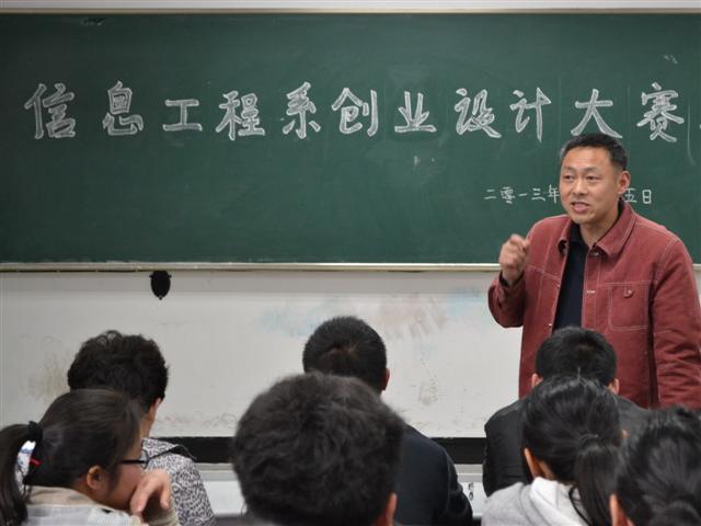 2013年4月25日中午,信息工程系在1119教室举办创业设计大赛,来自各班级的13支队伍参加了本次角逐。我系党总支书记程洪斌、招生就业处徐云龙老师以及各班辅导员共同出席并担任大赛评委。