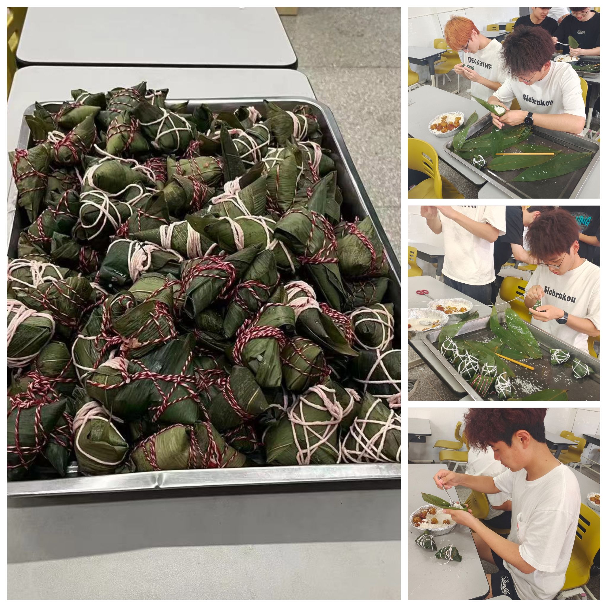 “端午粽飘香,岁岁得安康”包粽子活动。23移动2班在2510教室上了一堂生动的劳动教育课—学习包粽子,同学们将包粽子所需的糯米、粽叶、蜜枣和肉块等材料摆放整齐,由杨阳老师向同学们展示包粽子的具体步骤,分享了从粽叶的折叠、糯米的填充,到粽子的捆绑、打结的全部过程。随后同学们各显其能,包出了一个个形状各异的粽子,同学们在体验了中国传统文化的传承和魅力,更体会了传统美食制作工艺的独具匠心。