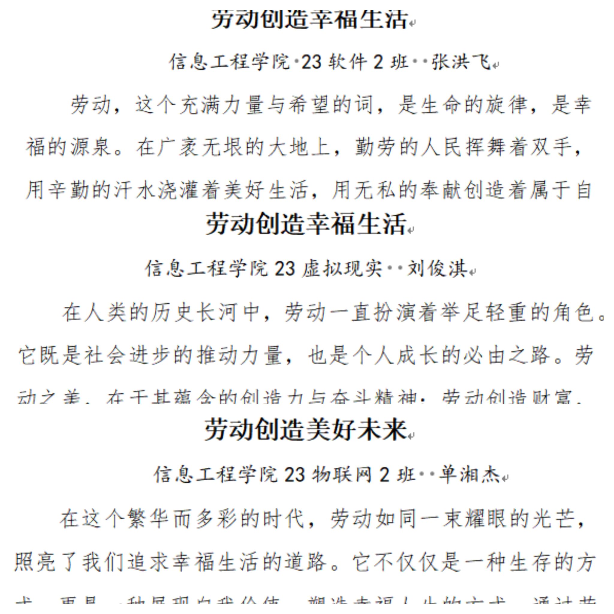 学院开展主题为“劳动创造幸福生活”的征文活动,择优推选3篇优秀征文,弘扬劳动精神、增强劳动意识、凝聚奋进力量。