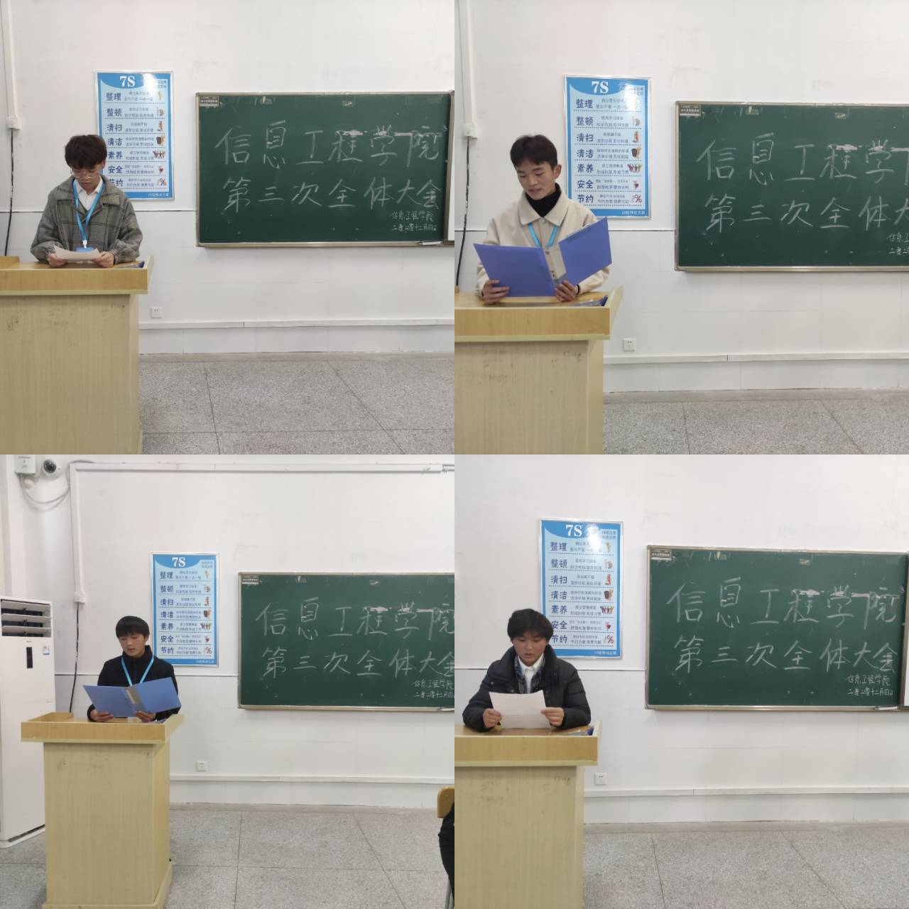 为有序推进学院发展,落实学生会各部门工作,提高各部门办事效率。信息工程学院学生会于12月4日中午在2506教室举行了第三次全体大会。团总支负责老师朱睿、19级全体学干及20级全体干事参加此次会议。