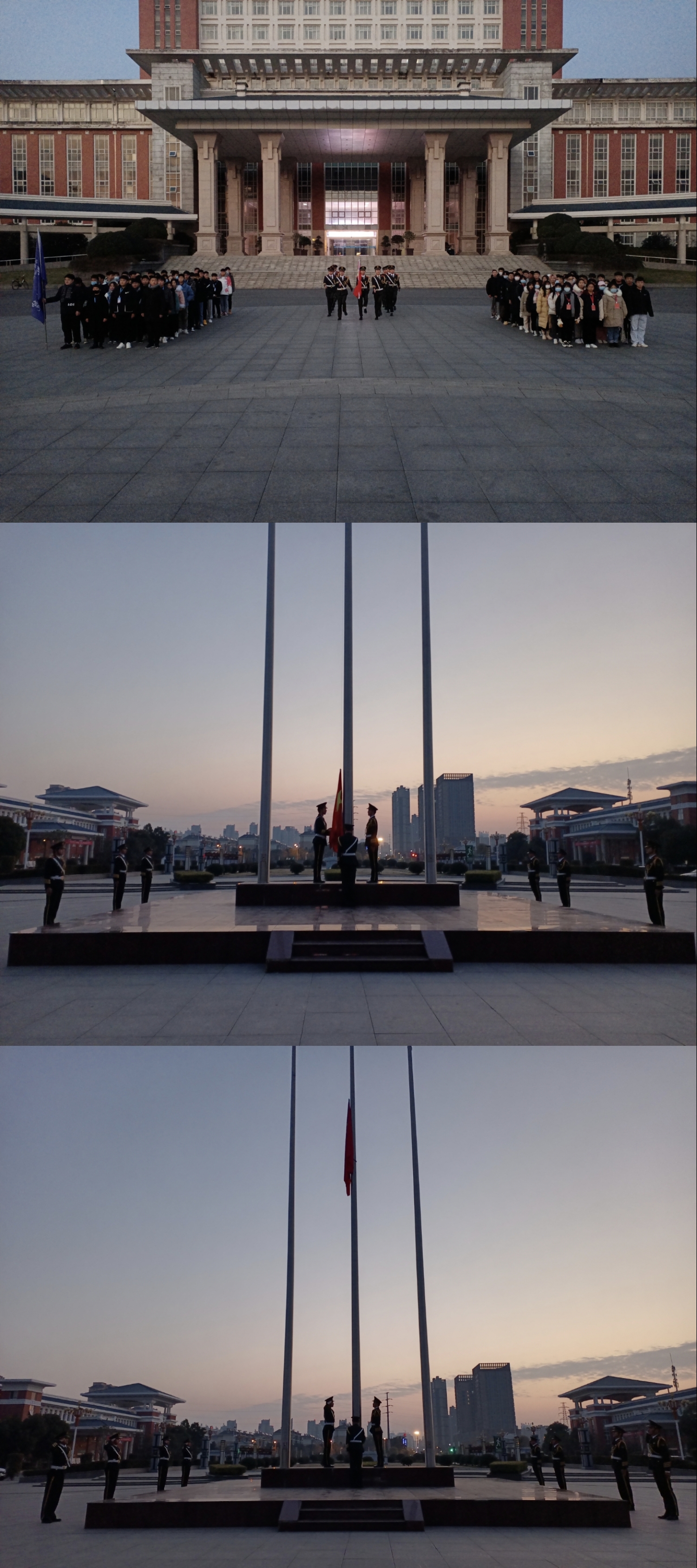 迎着朝阳,此次升旗仪式在主持人的致辞下正式开始。在全体成员的注目礼下,英姿飒爽的国旗队队员迈着铿锵的步伐护送着鲜艳的五星红旗进场。行礼完毕,伴随着庄严的国歌声,五星红旗冉冉升起,全体成员怀着崇敬与喜悦的心情,凝视着迎风飘扬的五星红旗,心中无比自豪。升旗结束后由学生代表上台发言,他倡议同学们要自觉遵守考试纪律,以诚信考试为荣,做一个诚实守信的大学生。最后活动在全体同学宣誓中圆满结束。