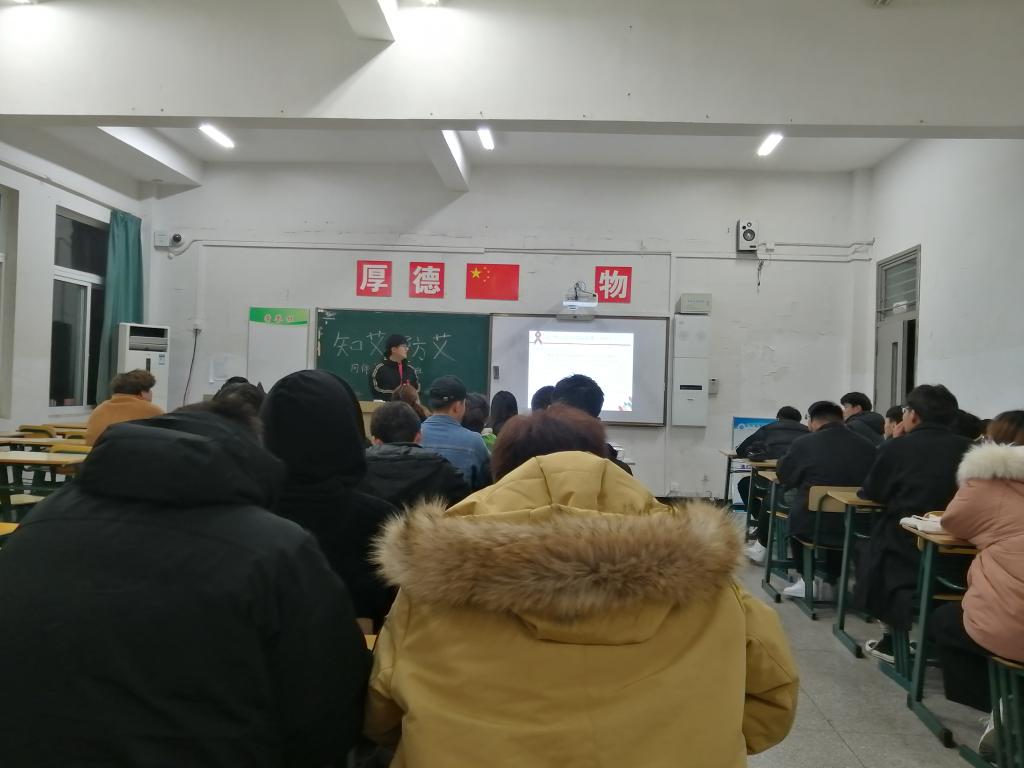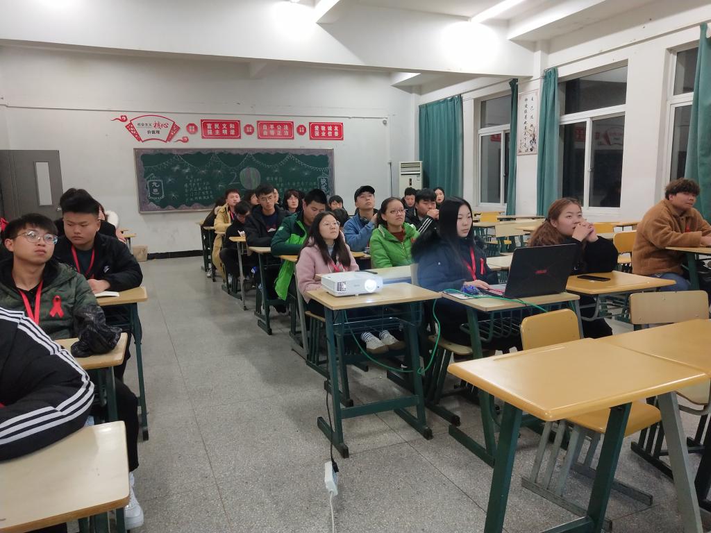 活动开始前,团总支副书记刘畅组织共青团工作者们为大家发放了艾滋病胸标,点明此次活动的主题。活动中,由19级团支部书记钱召阳主持,以PPT的方式为大家讲解了艾滋病的主要内容,用真实的案列、大量的数据、图片和现场演示讲解出何为艾滋,怎样预防艾滋,让同学们更加深入的了解艾滋病,并意识到预防艾滋的重要性。
