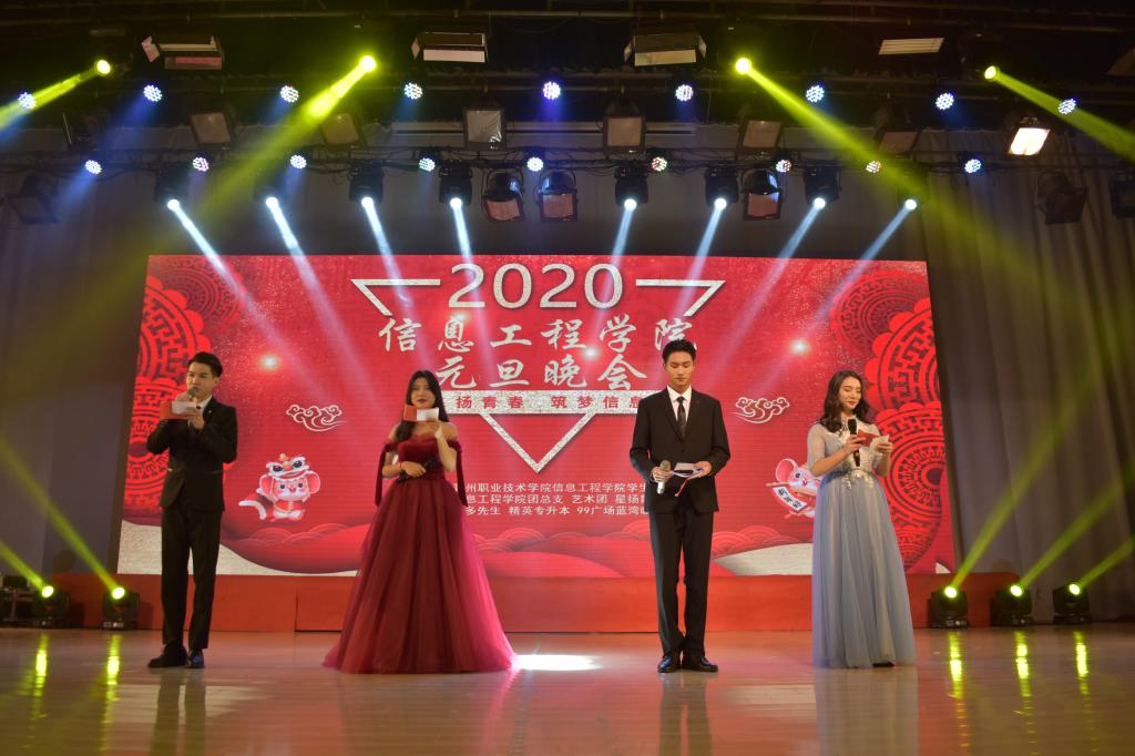 为了庆祝元旦佳节、丰富校园文化。12月22日晚,由信息工程学院主办的“飞扬青春,筑梦信息”大型元旦晚会在院大礼堂华丽上演。我院党总支书记程洪斌、党总支副书记杨阳、副院长邹军国等各位领导老师出席此次晚会并与我院学生会主席、团总支副书记及全体共青团工作者、各院学生带着对新一年的美好憧憬,共度良宵。