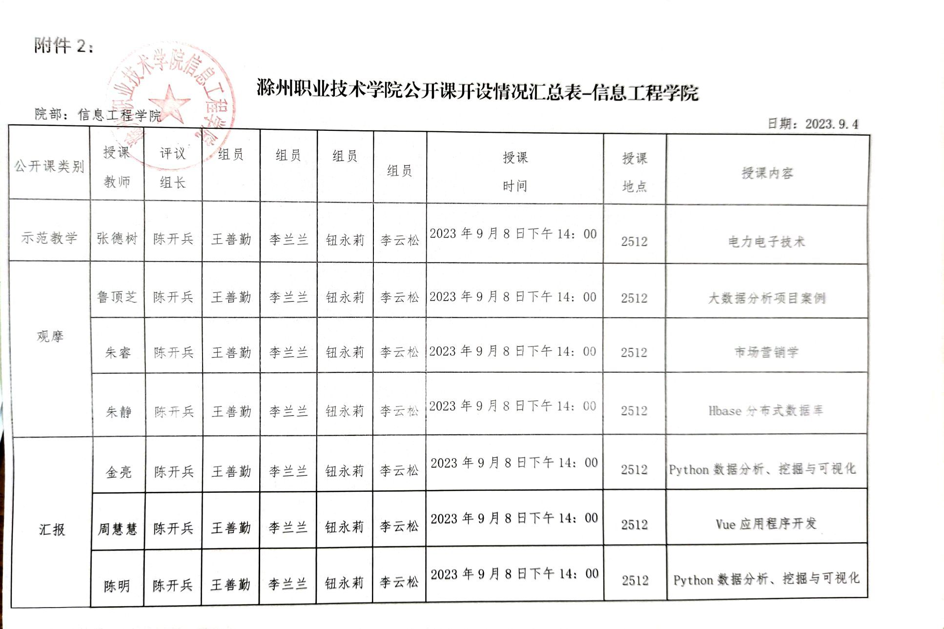 2023年必赢76net线路官网信息工程学院公开课开设情况公示