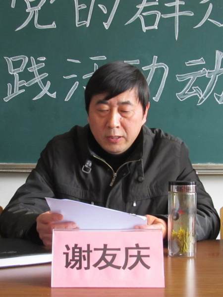 院党委第一督导组谢友庆组长肯定了我系教育实践活动的筹备工作,并在讲话中指出,要准确把握中央省委、市委和院党委关于活动的部署要求,同时深入扎实开展教育实践活动,把党员干部在活动中激发的热情转化为改进工作作风、干好本职工作的具体行动。同时还详细介绍了党委督导组的职责、任务和开展工作的方法。