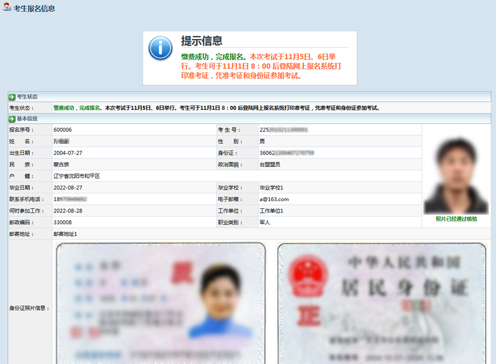 提交数据:提交报名信息到报名点审核,系统会检查数据的逻辑性,如果有问题,会提示考生修改。数据提交审核以后,信息将不能修改。