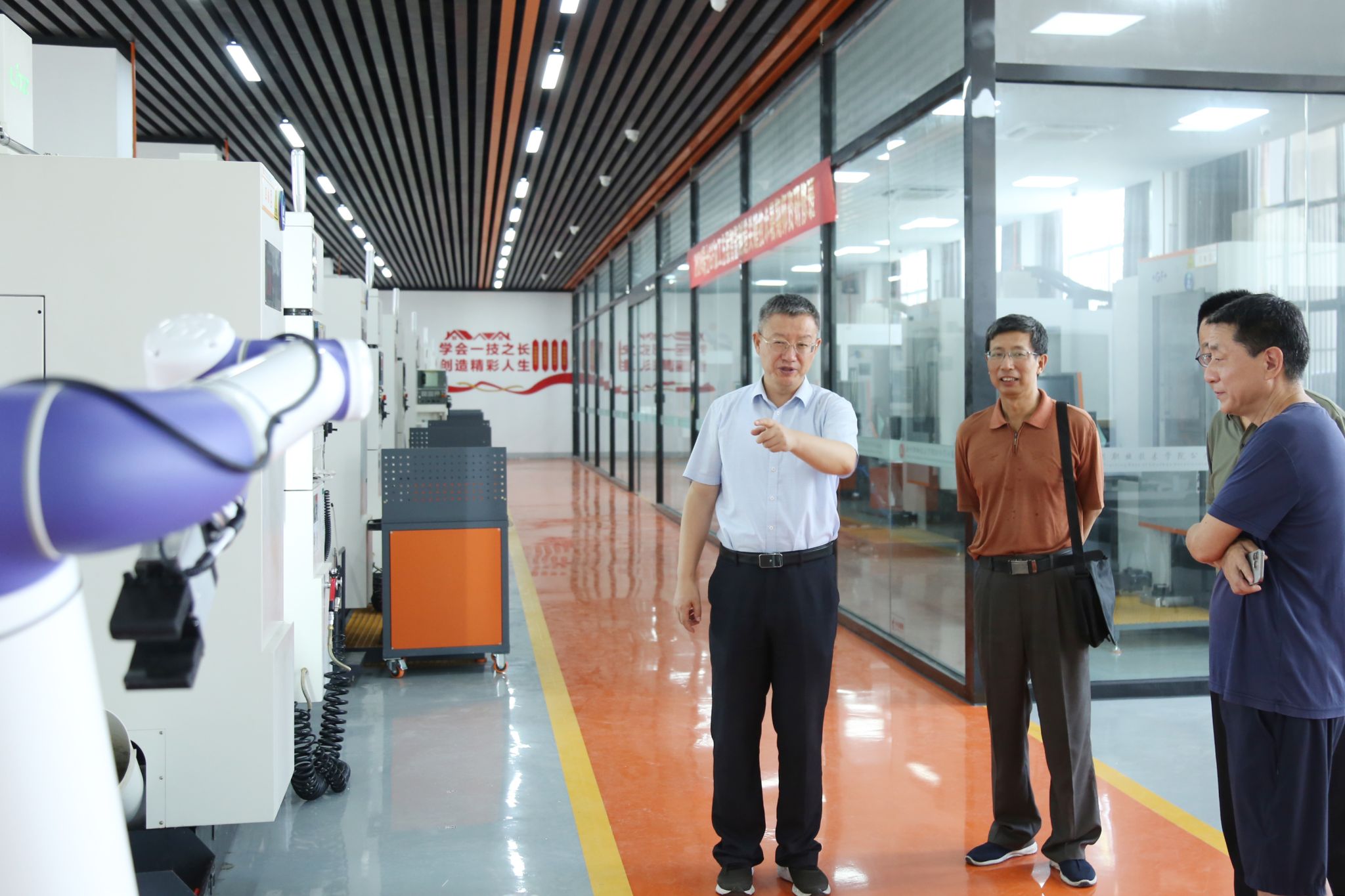 在虚拟仿真实训基地,曹付忠详细了解了虚拟仿真实训基地的建设成效、需解决的问题及未来规划等,实地查看了该基地承办的2024瑞士GF加工方案智能制造关键技术暑期师资研修班的进展情况。曹付忠强调,实训中心要进一步提升实训基地建设和管理水平,不断完善基地软硬件条件;要将移动复合式机器人等先进技术运用到教育教学中,推动教学质量再上新台阶;要树立系统观念,综合考虑教学、培训、技术服务等方面,做好国家级培训基地申报工作,切实提升实训室综合利用效率。