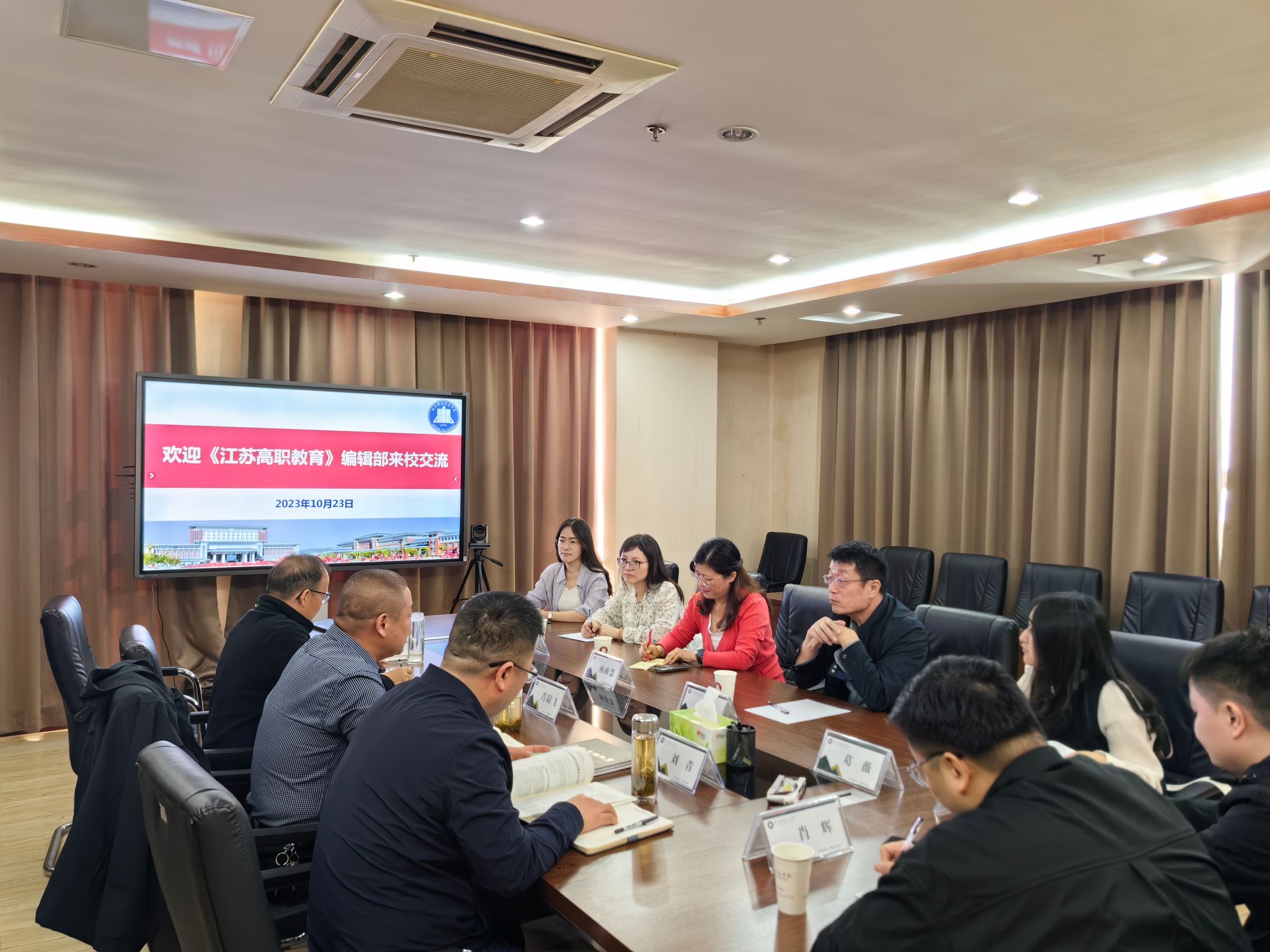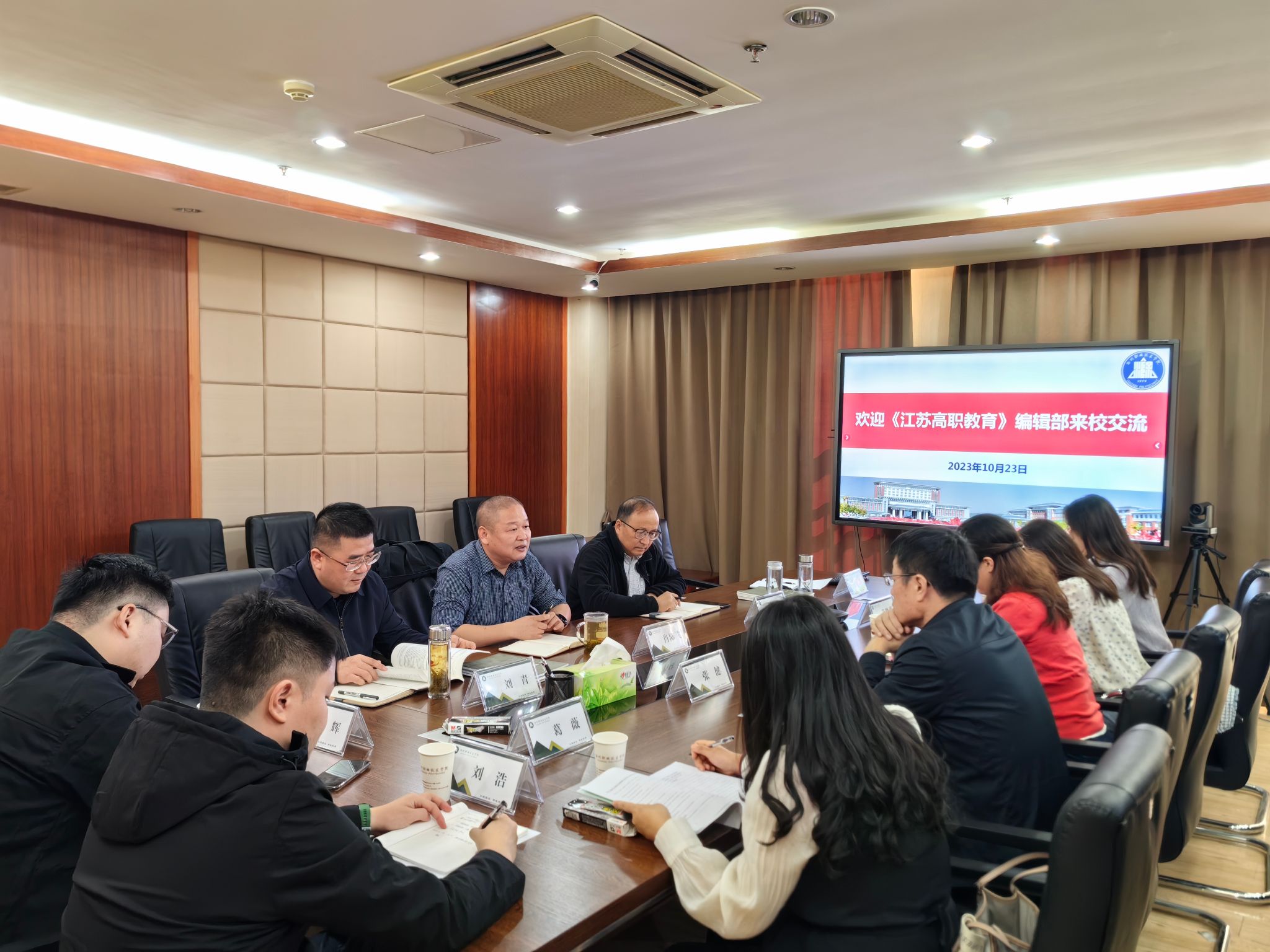 10月23日,南京工业职业技术大学《江苏高职教育》期刊社社长杨雨慧、执行主编张健等一行七人来必赢官网交流学报办刊、职业教育研究等方面工作。科技处处长肖陆飞接待并主持召开交流座谈会,科技处副处长、学报编辑部主任陈光锐,副处长刘青等相关工作人员参加。