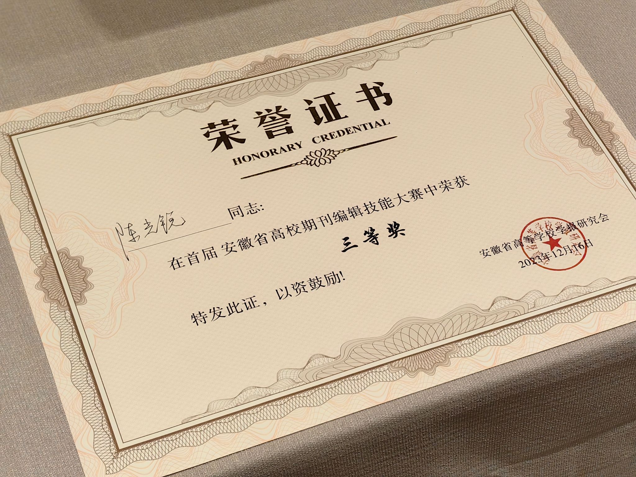 在本届年会期间,安徽省高校学报研究会举办了首届全省高校期刊编辑技能大赛,近90名本、专科高校编辑参加比赛,必赢官网学报编辑部陈光锐荣获三等奖。