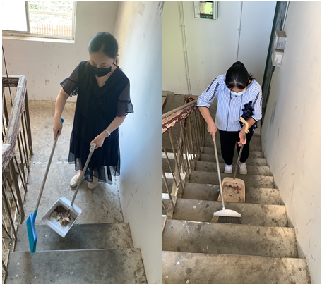 进入活动现场,在工作人员的带领下,大家手拿扫帚、簸箕、垃圾夹等工具,对社区居民楼的楼梯、走道等场所展开卫生打扫和垃圾清理。此外,志愿者们相互合作,对住宅小区内乱停乱放的电动车、自行车等进行规范停放。伴随着“汗水与灰尘齐飞”的场面,大家非但毫无一丝怨言,而却在脸上洋溢着快乐的笑容,在心里感受着奉献的光荣。经过一个多小时的劳作,使得该居民楼和住宅小区的面貌大大改观、焕然一新。