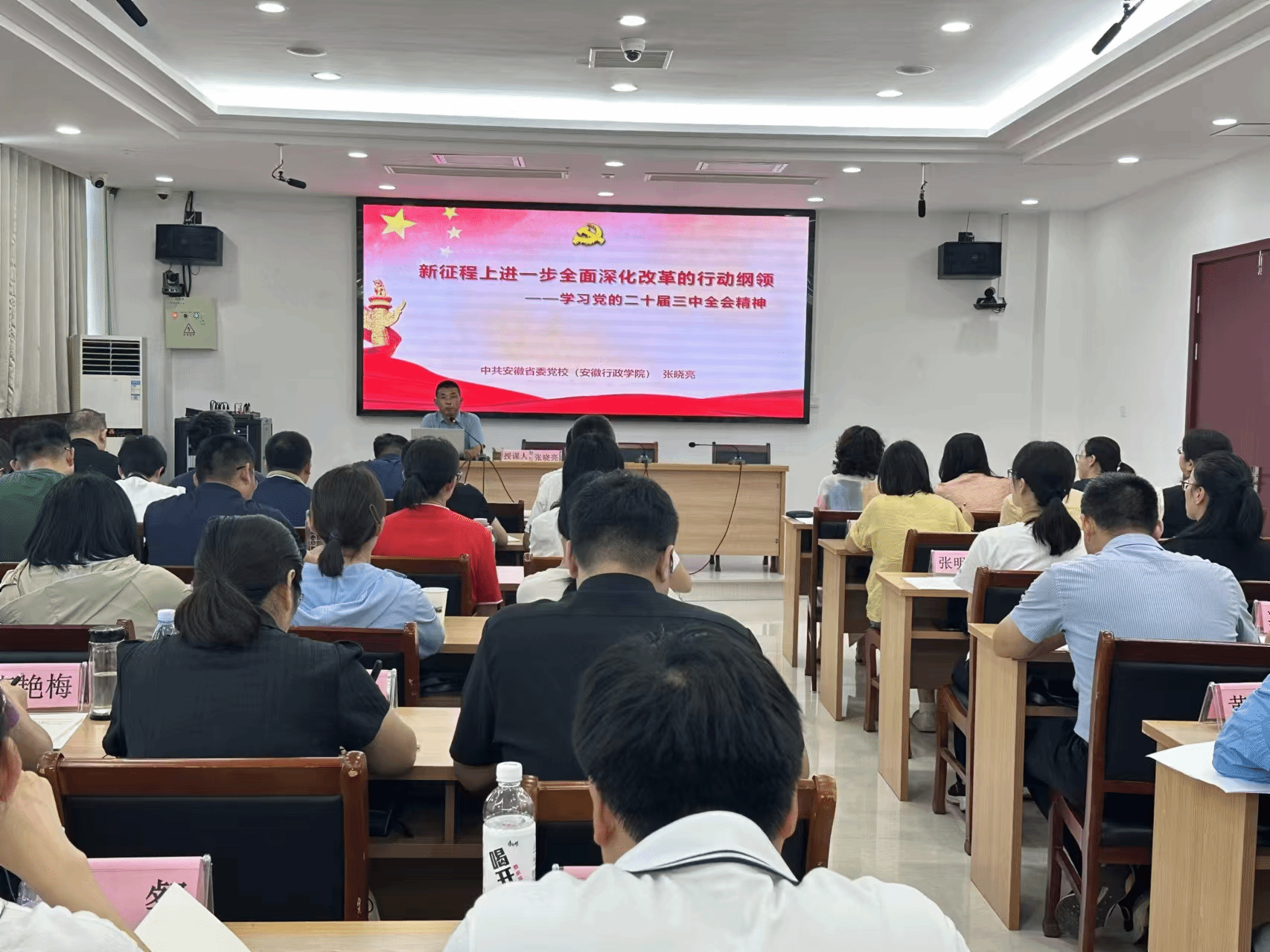 开班式结束后,安徽省委党校马克思主义学院副院长张晓亮作了题为《新征程上全面深化改革的行动纲领——学习党的二十届三中全会精神》的专题报告。报告系统梳理了党的历次全会,对党的二十届三中全会主题和内容进行了深入的解读。